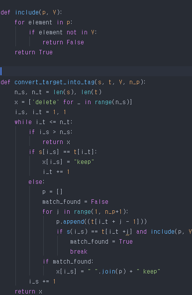 ☆ Laser Tagger에서 토큰의 단위는 단어가 아닌 '구(句)' 입니다. 한국어 NLP에서 주로 토큰을 형태소로 구성하는 것과는 다릅니다.